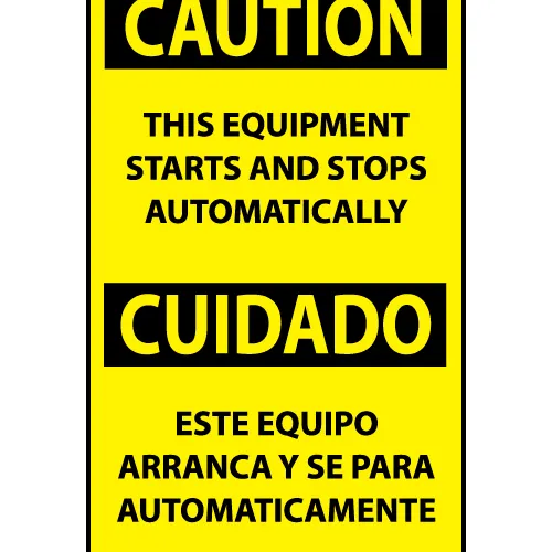 Bilingual Machine Labels - Caution This Equipment Starts And Stops Automatically