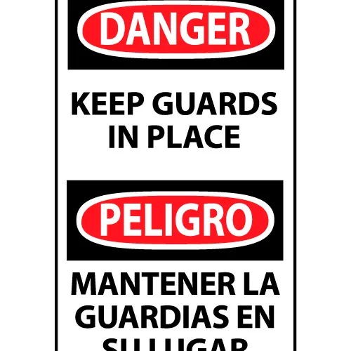 Bilingual Machine Labels - Danger Keep Guards In Place
