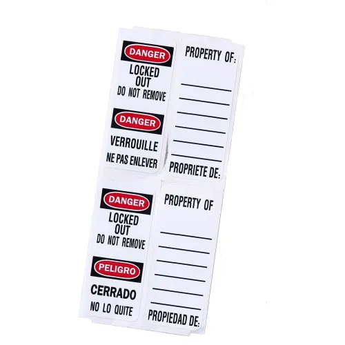 Master Lock® Bilingual Padlock Labels for 411 padlocks (100 Sets, 50 Sets/Each Language), S141