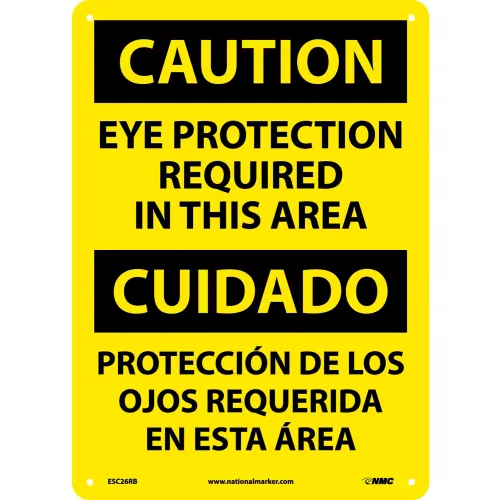 NMC Bilingual Plastic Sign, Caution Eye Protection Required In This Area, 10"W x 14"H