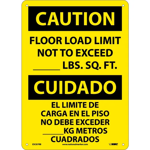 Bilingual Plastic Sign - Caution Floor Load Limit Not To Exceed