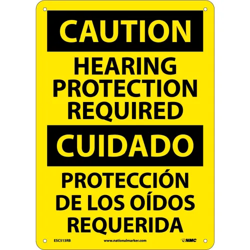 Bilingual Plastic Sign - Caution Hearing Protection Required