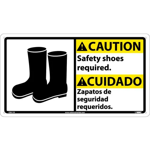 Bilingual Plastic Sign - Caution Safety Shoes Required