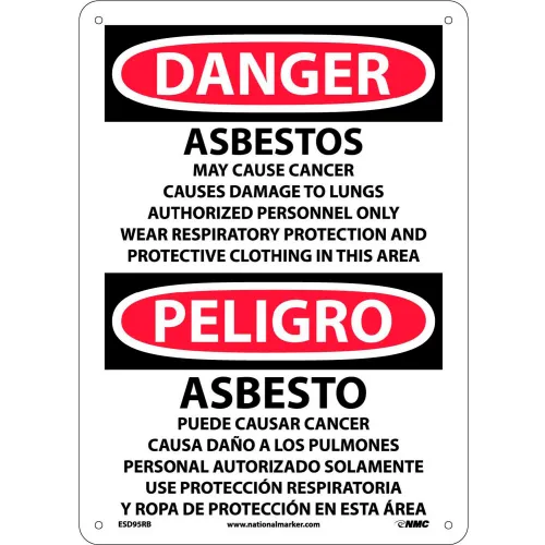 NMC Bilingual Plastic Sign, Danger Asbestos Cancer And Lung Disease Hazard, 10"W x 14"H