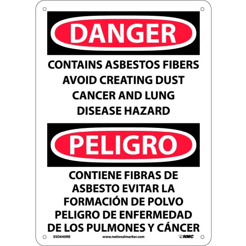Bilingual Plastic Sign - Danger Contains Asbestos Fibers Avoid Creating Dust