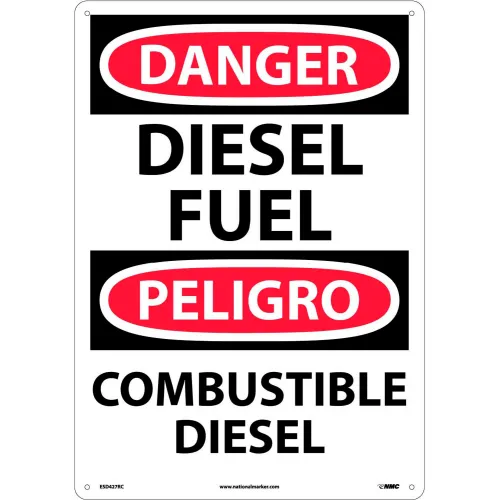 NMC Bilingual Plastic Sign, Danger Diesel Fuel, 14"W x 20"H