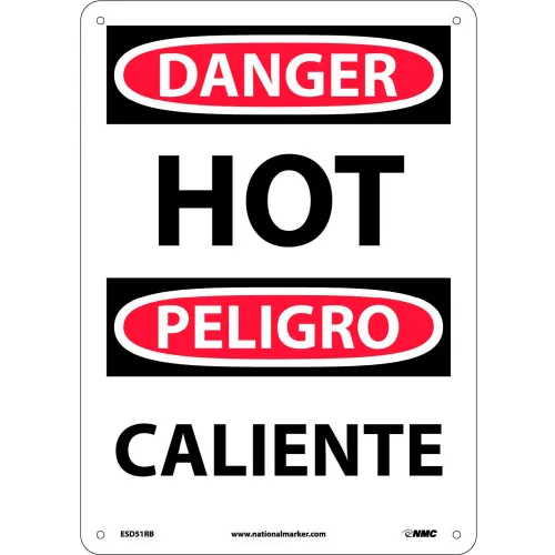 NMC Bilingual Plastic Sign, Danger Hot, 10"W x 14"H