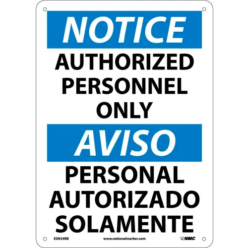 NMC Bilingual Plastic Sign, Notice Authorized Personnel Only, 10"W x 14"H
