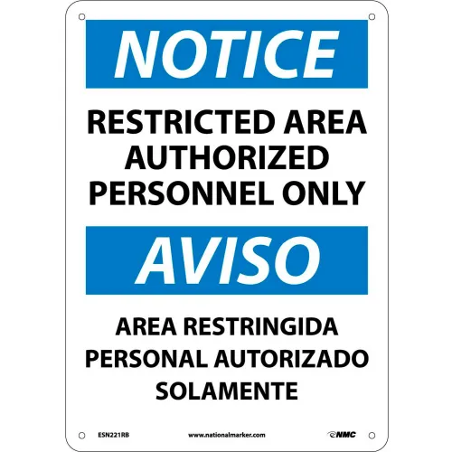 Bilingual Plastic Sign - Notice Restricted Area Authorized Personnel Only