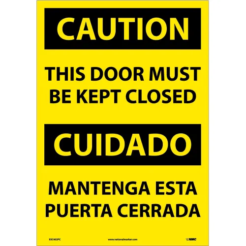 NMC Bilingual Vinyl Sign, Caution This Door Must Be Kept Closed, 14"W x 20"H