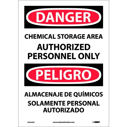 NMC Bilingual Vinyl Sign, Chemical Storage Area Authorized Personnel Only, 10"W x 14"H