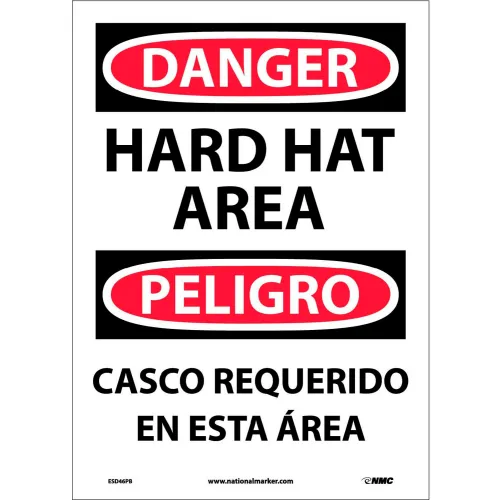 NMC Bilingual Vinyl Sign, Danger Hard Hat Area, 10"W x 14"H