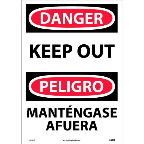 NMC Bilingual Vinyl Sign, Danger Keep Out, 14"W x 20"H