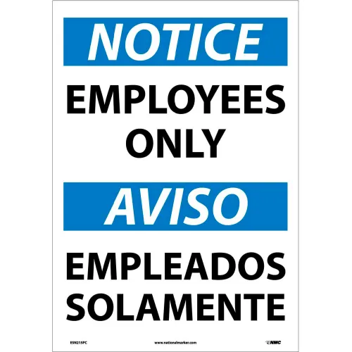 NMC Bilingual Vinyl Sign, Notice Employees Only, 14"W x 20"H