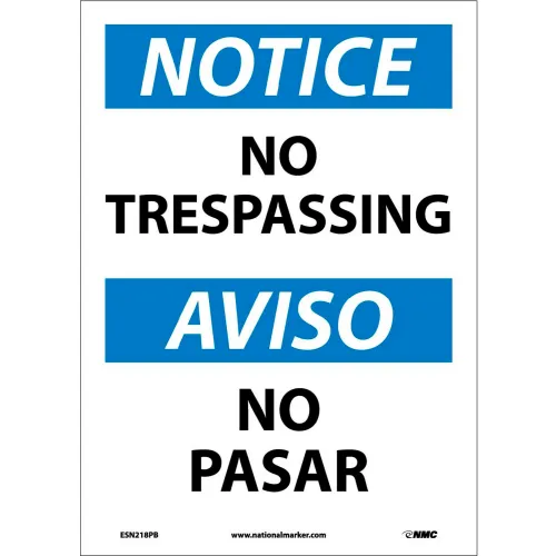 NMC Bilingual Vinyl Sign, Round Corner, Notice No Trespassing, 10"W x 14"H
