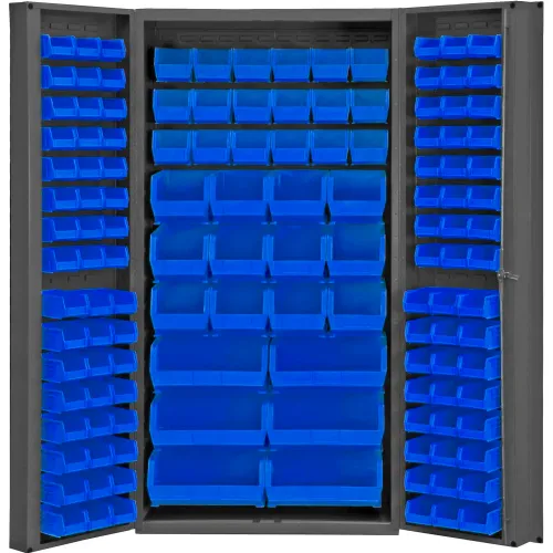 Global Industrial Bin Cabinet Deep Door - 132 Blue Bins, 16 Ga All-Welded Cabinet 36 x 24 x 72