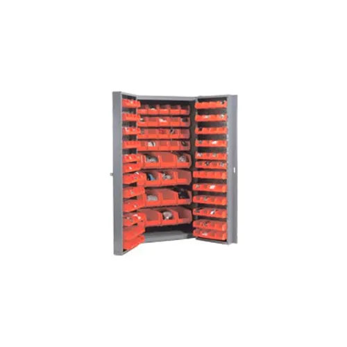 Global Industrial Storage Cabinet w/ 136 Red Bins, 3 Sizes, 38"W x 24"D x 72"H, Unassembled
