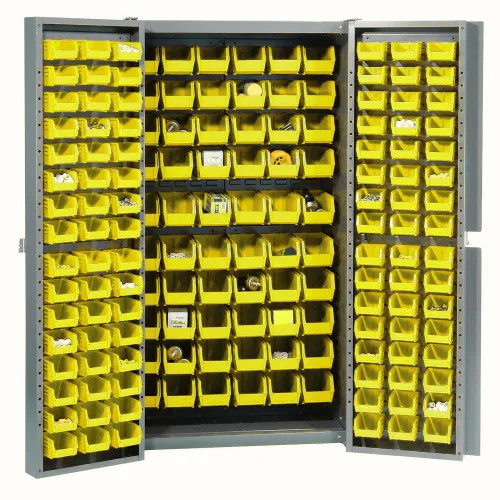 Global Industrial Deep Door Bin Cabinet, 156 Yellow Bins, Assembled, 38"W x 24"D x 72"H