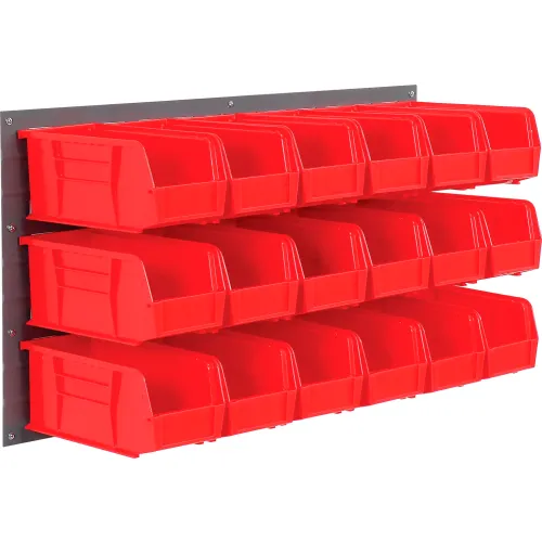 Global Industrial Wall Bin Rack Panel 36 x19 - 18 Red 5-1/2x11x5 Stacking Bins