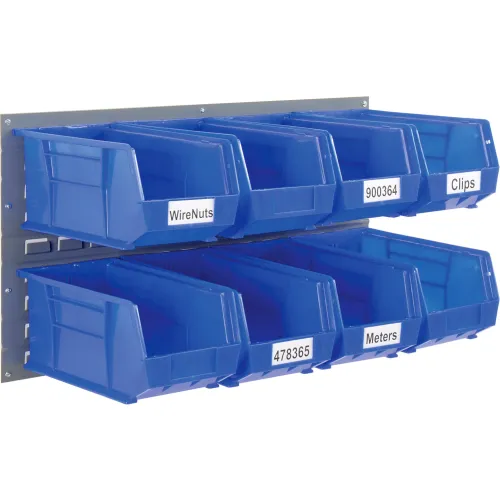 Global Industrial Wall Bin Rack Panel 36 x19 - 8 Blue 8-1/4x14-3/4x7 Stacking Bins