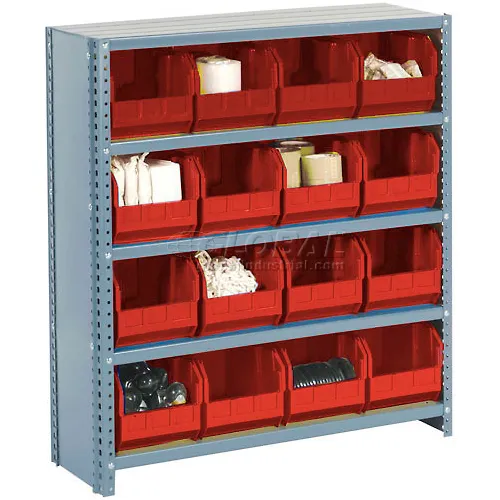 Global Industrial Steel Closed Shelving - 42 Red Plastic Stacking Bins 11 Shelves - 36x12x73