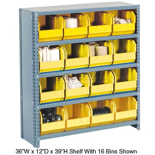 Global Industrial Steel Closed Shelving - 60 Yellow Plastic Stacking Bins 11 Shelves 36x12x73
