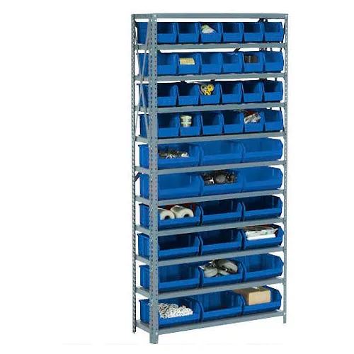Global Industrial Steel Open Shelving with 8 Blue Plastic Stacking Bins 5 Shelves - 36x18x39