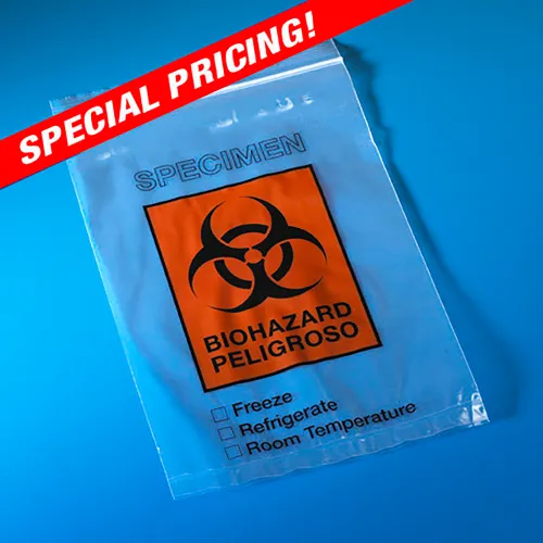Biohazard Specimen Transport Bag, 6" x 9", Zipper, Document Pouch, 100/Pack, 10 Packs/Unit