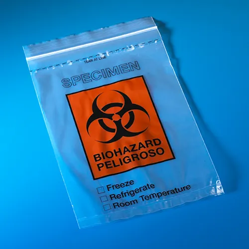 Biohazard Specimen Transport Bag, 6" x 9", Zipper, Document Pouch, Tearzone, 1000/Pack