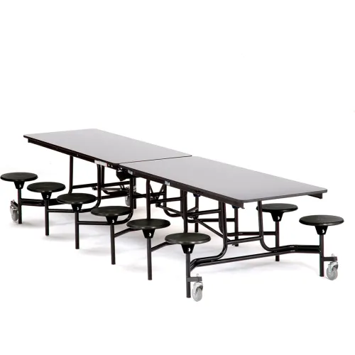 NPS® Mobile Cafeteria Table With Stools, 145"L x 59"W, Gray Top/Black Stools/Black Frame