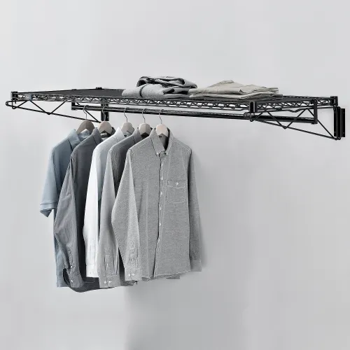 Black Coat Rack with Bars - Wall Mount - 60"W x 24"D x 6"H