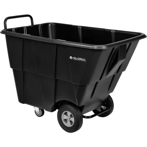Global Industrial Standard Duty Plastic Tilt Truck, 1/2 Cu. Yd. Cap, 850 Lbs. Cap, Black