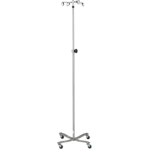 Blickman 1410SS Stainless Steel IV Stand with 4-Leg Base, 2-Hook, 51-3/4" - 94" Height