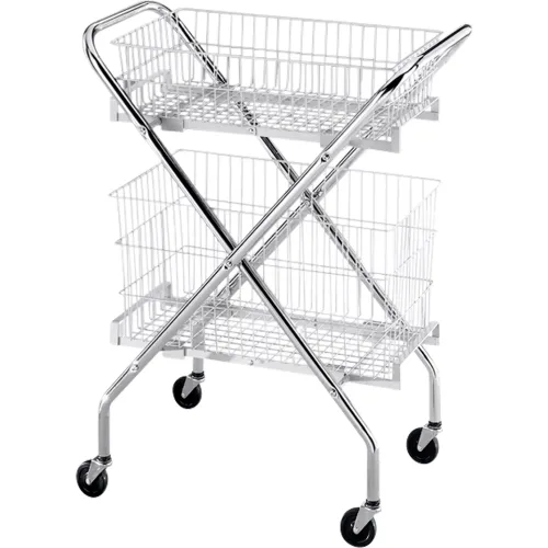Blickman Folding Utility Cart, 2 Wire Baskets - 6" And 12"D, 29-1/4"L x 19-1/2"W x 38-1/2"H