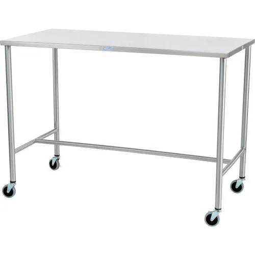 Blickman Sawyer Stainless Steel Mobile Instrument Table, 48"W x 24"D, H-Brace