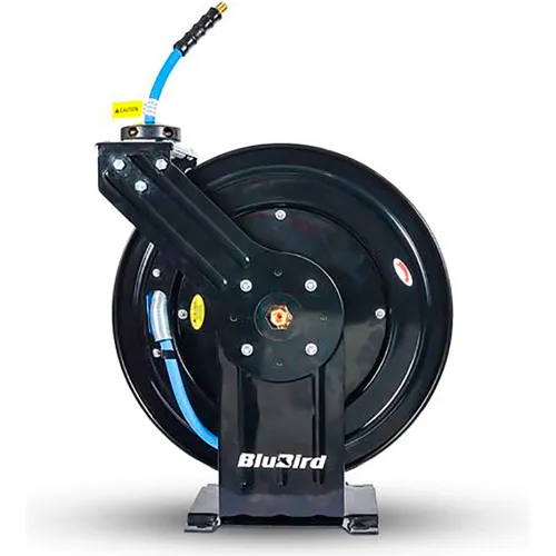 BluBird® Rubber Air Hose Reel, Dual Arm Assembly with 3/8" x 75'L Hose, 300 PSI