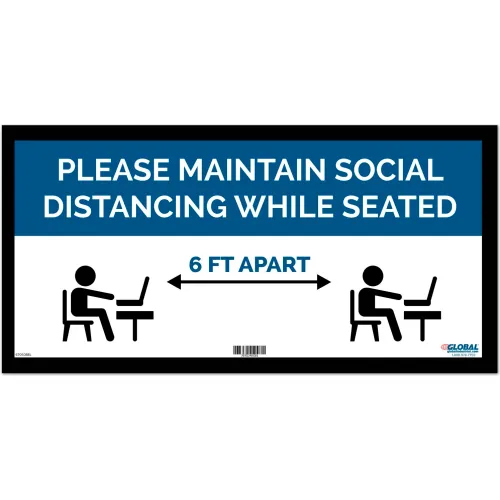 Global Industrial™ Blue Maintain Social Distancing While Seated Sign, 24"W x 12''H, Adhesive