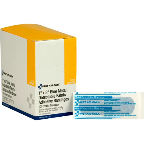 First Aid Only Blue Metal Detectable Fabric Bandages, 1" x 3", 100/Box