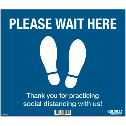 Global Industrial™ Blue Please Wait Here Floor Sign, 14"W x 12"H, Vinyl Adhesive