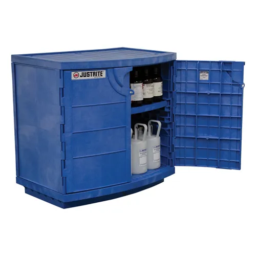 Justrite 8.5 Gallon Poly Acid Cabinet, Manual Close, 2 Door, 36"W x 25"D x 35"H, Blue