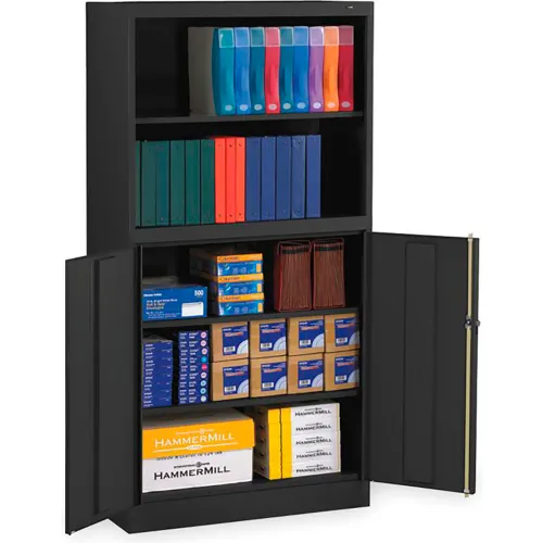 Tennsco® Heavy Duty Storage Cabinet with Bookcase, 24 Gauge, 36"W x 18"D x 72"H, Black