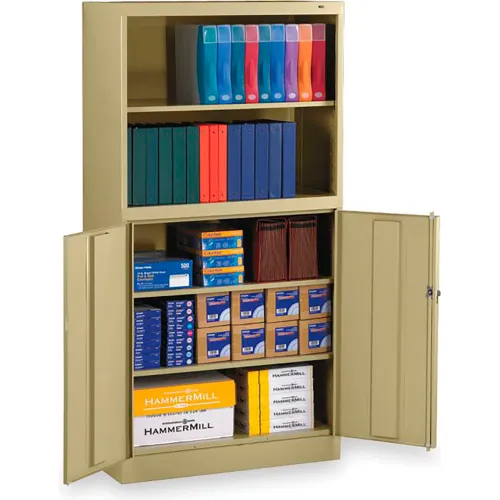 Tennsco® Heavy Duty Storage Cabinet with Bookcase, 24 Gauge, 36"W x 18"D x 72"H, Sand