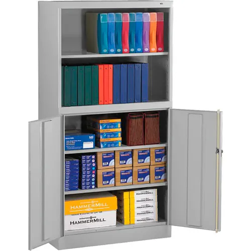 Tennsco® Heavy Duty Storage Cabinet with Bookcase, 24 Gauge, 36"W x 18"D x 72"H, Light Gray