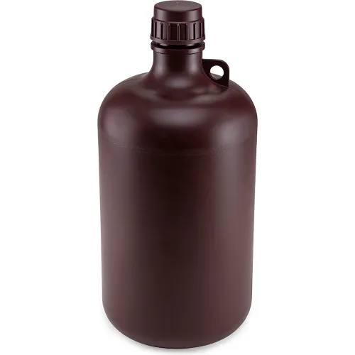 Bottle, Narrow Mouth, Amber Polypropylene Bottle, Attached Polypropylene Screw Cap, 8 Liters