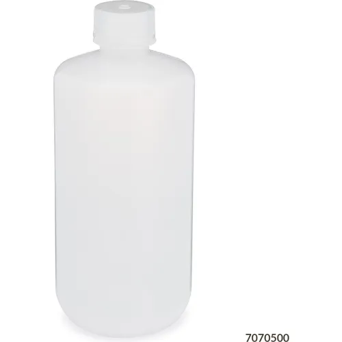 Bottle, Narrow Mouth, LDPE, Attached Polypropylene Screw Cap, 500mL, 12/Pack