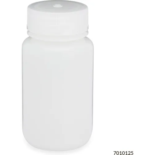 Bottle, Wide Mouth, HDPE, Attached Polypropylene Screw Cap, 125mL, 12/Pack