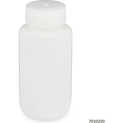 Bottle, Wide Mouth, HDPE, Attached Polypropylene Screw Cap, 250mL, 12/Pack