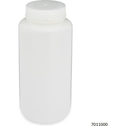 Bottle, Wide Mouth, HDPE Bottle, Attached Polypropylene Screw Cap, 1000mL, 6/Pack