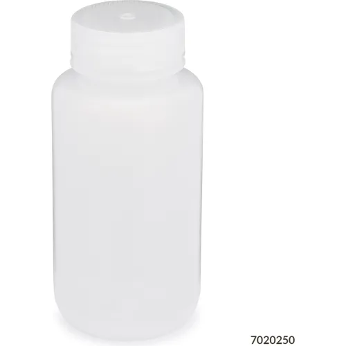 Bottle, Wide Mouth, LDPE, Attached Polypropylene Screw Cap, 250mL, 12/Pack
