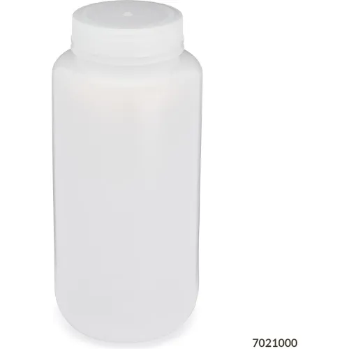 Bottle, Wide Mouth, LDPE Bottle, Attached Polypropylene Screw Cap, 1000mL, 6/Pack